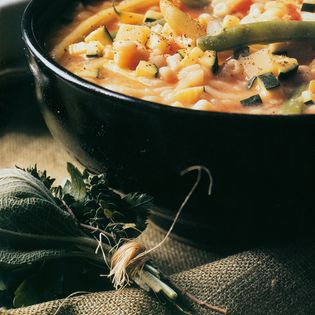 - fifteen-minute specials (mussels and tomato soup) and those that simmer all day (pot-au-feu)a magical garlic broth, among other vegetable broths and bases, gives vegetarians hundreds of recipes to enjoy