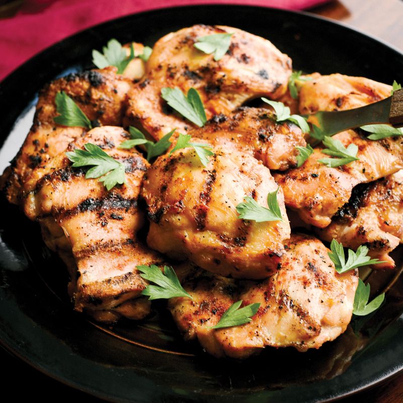 When the weather warms up, it's time to dust off the barbecue grill and head for the great outdoors. Here are a few ideas to get you started, from simple Grilled Chicken Thighs and Thai-style Prawn Skewers, to a slow-cooked Grilled Pork Butt.