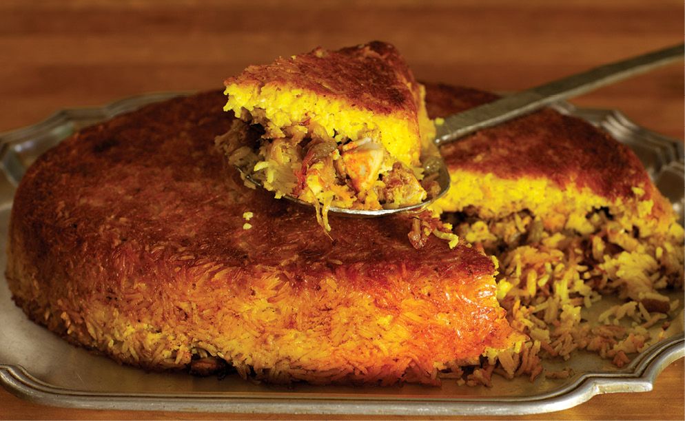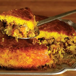 Baked Saffron Yogurt Rice with Lamb