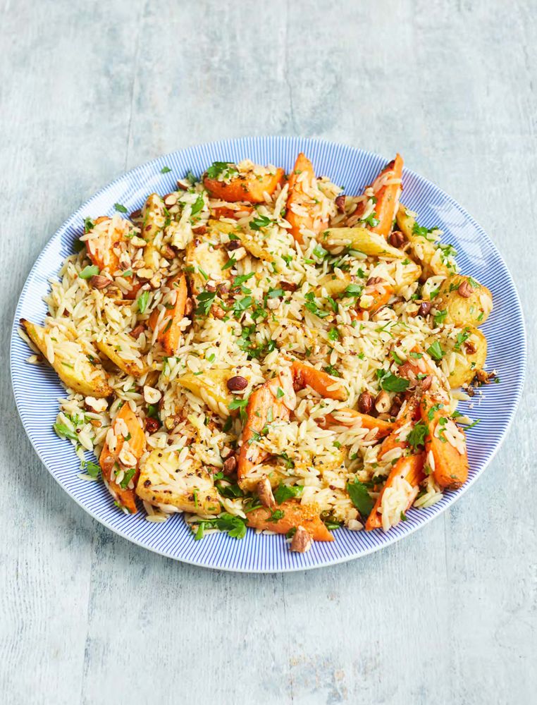 Roasted parsnips and orzo with dukkah