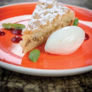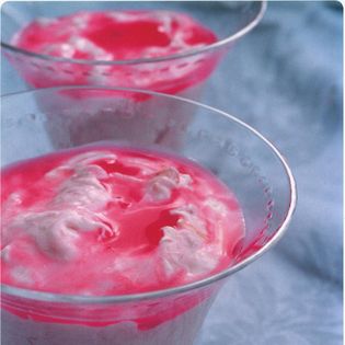 Compote of Caramelized Rhubarb with Elderflower Cream and Rhubarb Sorbet