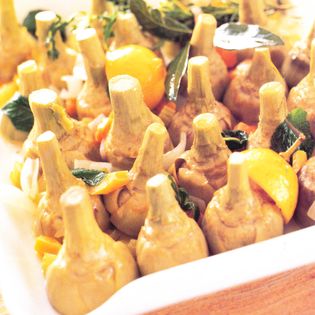 Artichoke Bottoms Stuffed with Fava Bean Puree