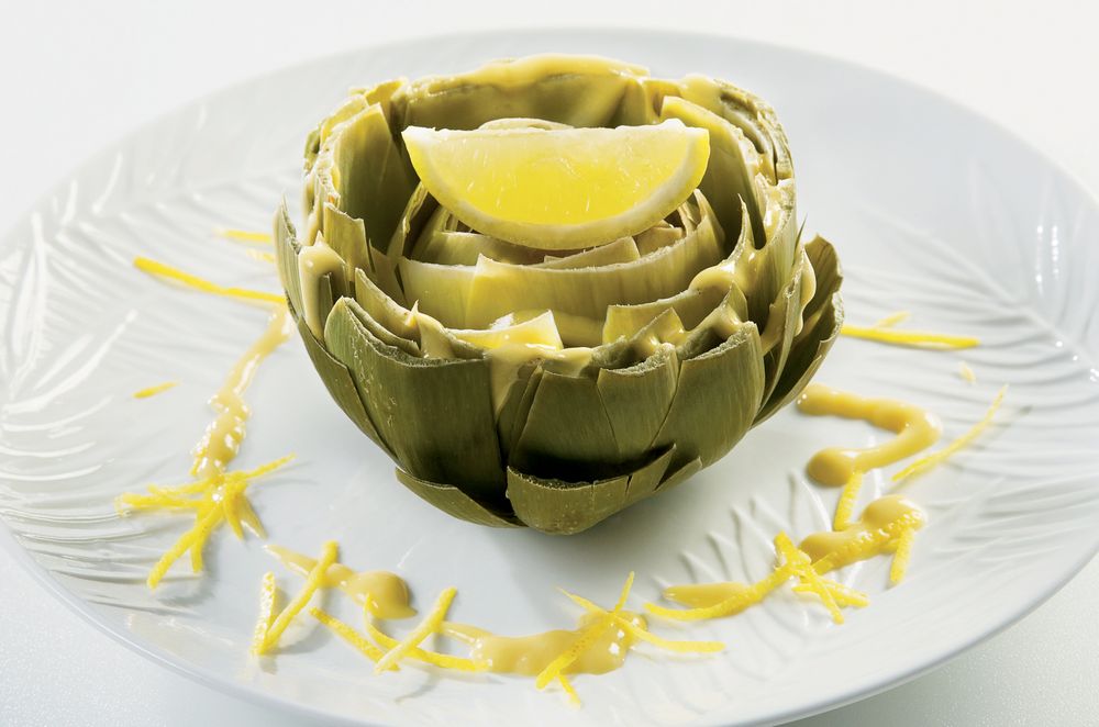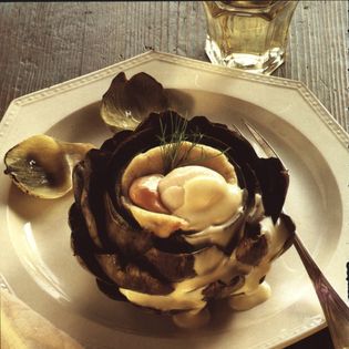 Artichokes Stuffed with Red Mullet Mousse and Hollandaise Sauce