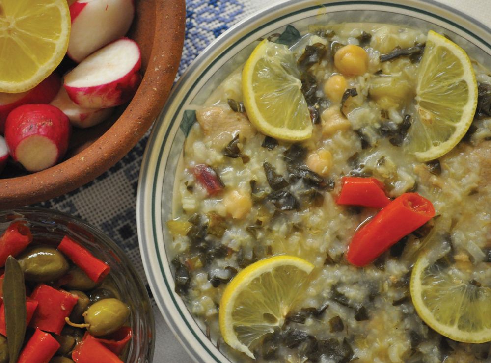 Many Middle Eastern dishes are accompanied with grains or couscous. The region’s rice dishes make the most of rice’s capacity to absorb rich cooking juices from the meat or vegetables they are served with. The texture of rice is also an important part of Middle Eastern rice cookery, with some recipes that deliberately shape the rice with a mould or heavy pan. The crust that can be created on the base of the rice is delicious and much prized.