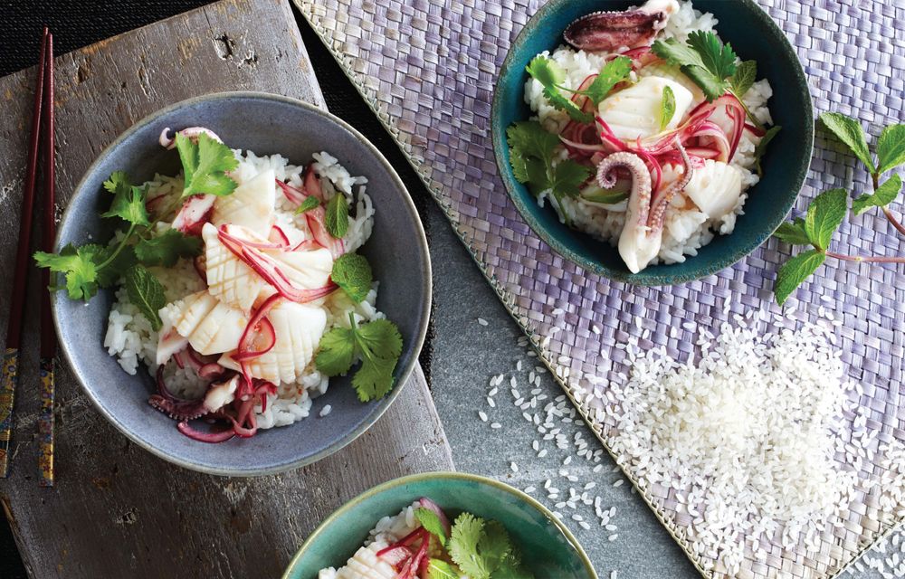Japan has a special relationship with rice, and important national dish sushi has rice at its heart. Sushi rice is shorter grained than much of the rice eaten in quantity in Asia, and unlike in an Indian pulao or most Middle Eastern rice dishes, the grains are prepared to ensure they stick together. A glaze of rice wine vinegar, sugar and salt completes the preparation of traditional sushi rice – a recipe for which is in our collection of core rice recipes.