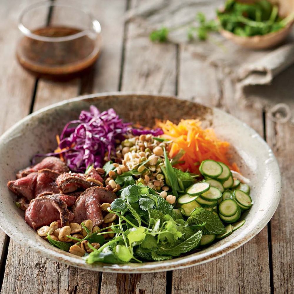 Speedy Beef and Rainbow Salad with Spicy Ginger and Lime Dressing