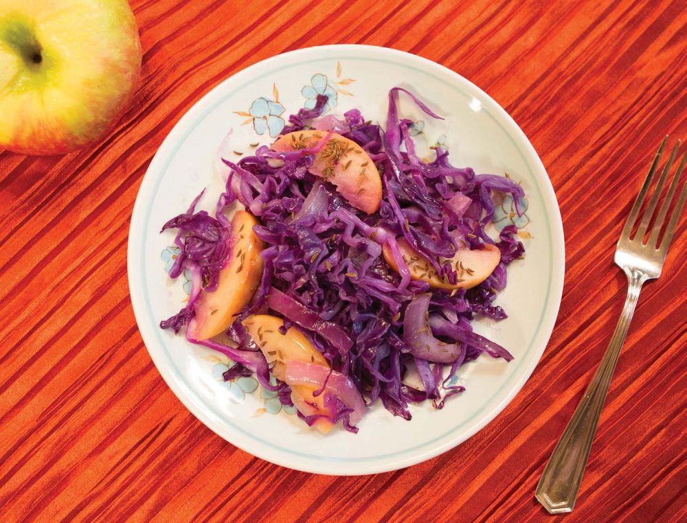 This darkly colored cabbage is widely available and very versatile. It's great sliced raw into a slaw or pickle, stays vibrant in a variety of dishes, and takes long slow cooking like few other leafy vegetables. The classic, long slow braise is a perfect winter warmer alongside meat or game, or simply served with a baked potato.