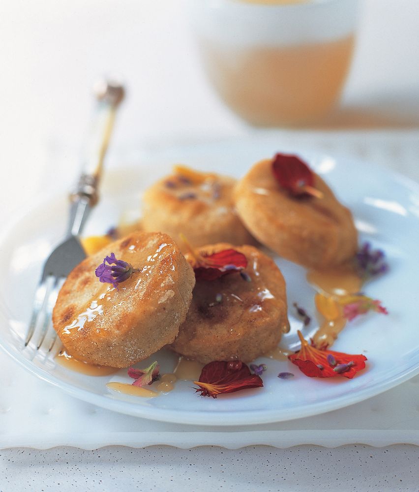 Flower petal rice cakes in honey