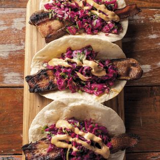 Chipotle Bacon Tacos with Toasted Cumin Slaw and Chipotle-Lime Mayonnaise