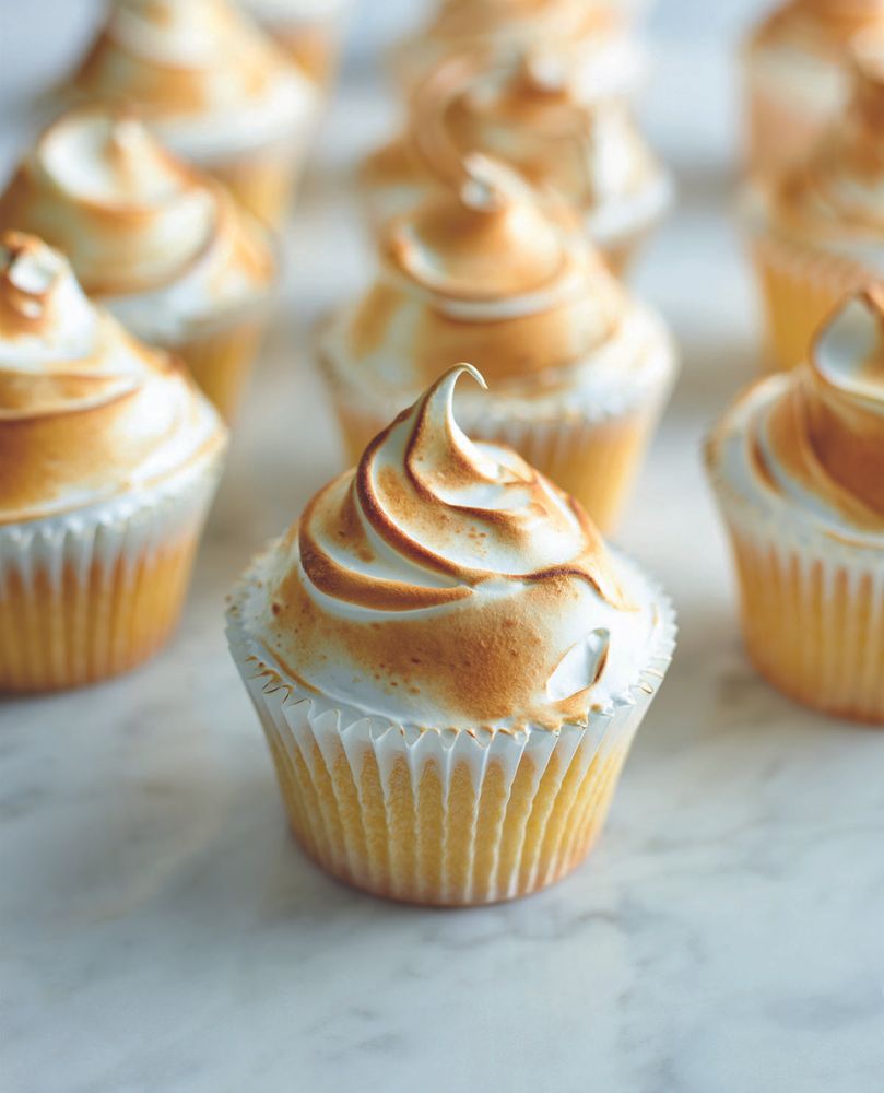 Meringue-Topped Cupcakes with Lemon & Raspberry Filling