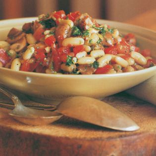 Flageolet Beans with Mushrooms, Tomatoes and Gremolata