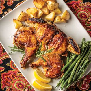 Moroccan Chicken Breasts with Cauliflower, Green Olives, and Pomegranate Seeds