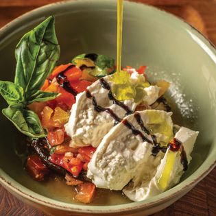 Grilled Portobello Mushroom Caps with Burrata and Heirloom Tomatoes