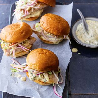 Lingcod Sliders with napa cabbage–apple slaw
