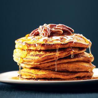 Buckwheat Banana Bread Pancakes with Peanut Butter Syrup