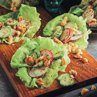 Lettuce Cups with Cucumbers and Yogurt Sumac Dressing