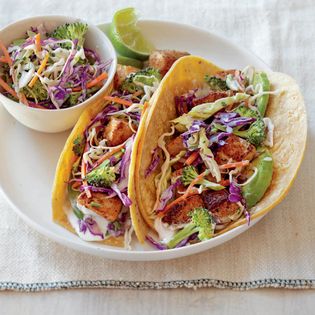 Fish Tacos with Broccoli Slaw and Lime Cream Sauce