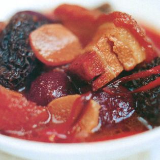 Pork Belly Hot-Pot with Chilli, Baby Beets, Morels and Miso