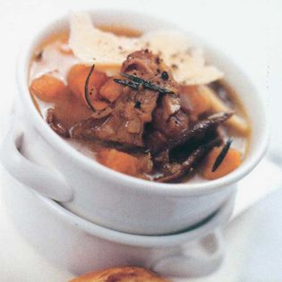Chickpea, Celery, and Porcini Soup with Pecorino Cheese