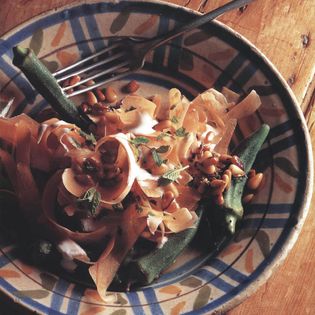 Carrot and Yogurt Salad with Pine Kernels and Steamed Okra