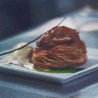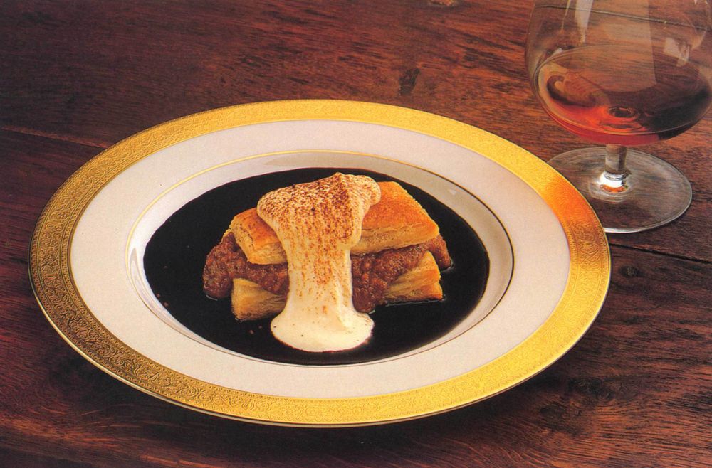Pecan Puff Pastry with Chocolate Sauce and Sabayon