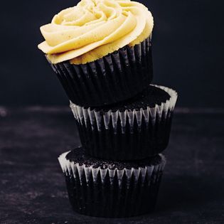 Chocolate-Mayonnaise Cupcakes with Caramel-Butterscotch Buttercream Frosting