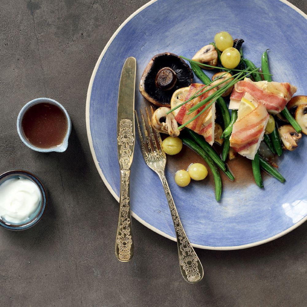 Guinea Fowl with Apples, Prunes & Armagnac Mustard Sauce