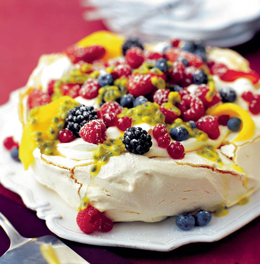 Pavlova with Berries, Mango and Passion Fruit