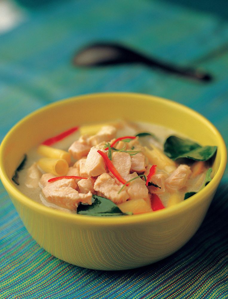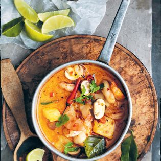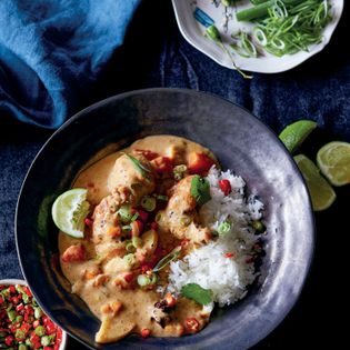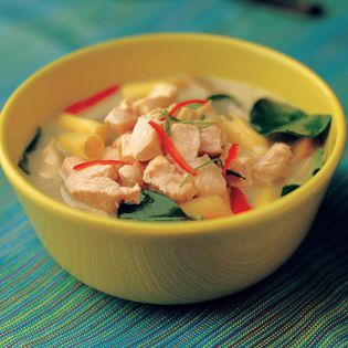 This rhizome is related to ginger but has a thinner skin, a pinkish color and a distinct flavor – more sour and far less than ginger, with an aromatic, pine-resin scent. It's an essential ingredient in Southeast Asian cooking, particularly Thai and Indonesian, and is perhaps most familiar as one of the main ingredients in Thai Tom Kha Gai soup ("kha" is galangal's Thai name). While it can be found in dried or powdered form, fresh or frozen is the most flavorful. Here we've gathered recipes for dishes using galangal from around Southeast and East Asia, plus a surprise chocolate-galangal cookie recipe.