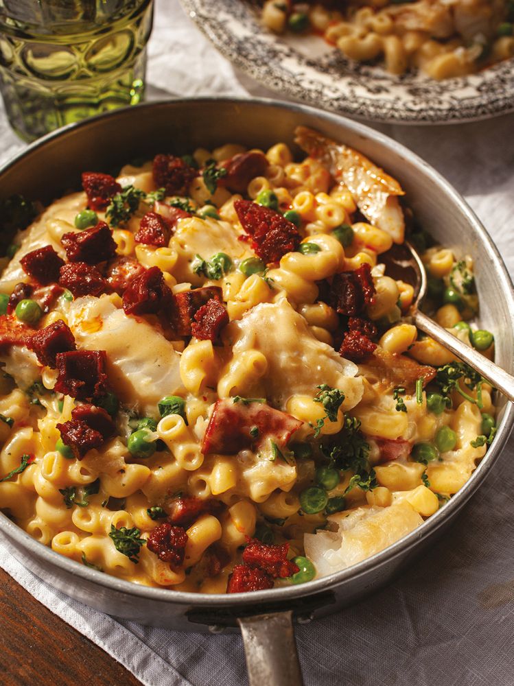 Smoked Haddock, Pea and Chorizo Macaroni Cheese