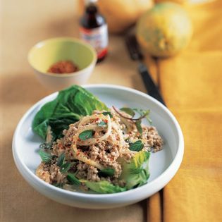 Issahn-Style Minced Pork Salad with Crunchy Rice and Fresh Mint
