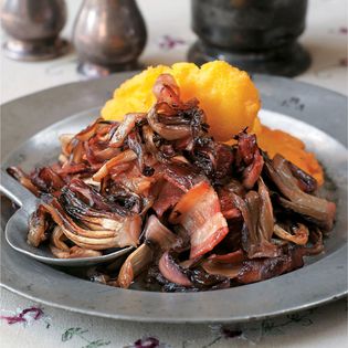 Radicchio comes into its own in mid-winter and early spring, making it a particularly welcome ingredient when there's not much else around. Radicchio has a slight bitterness that mellows when it's cooked, and it pairs beautifully with eggs, rice, and cheese. Try Radicchio and Red Onion Risotto, use it in classic Frittata di Radicchio, or in a colorful Chopped Salad with broccoli, almonds, and egg.