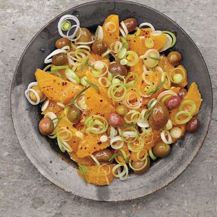 Orange, Olive, and Baby Leek Salad with Verjus-Tarragon Dressing