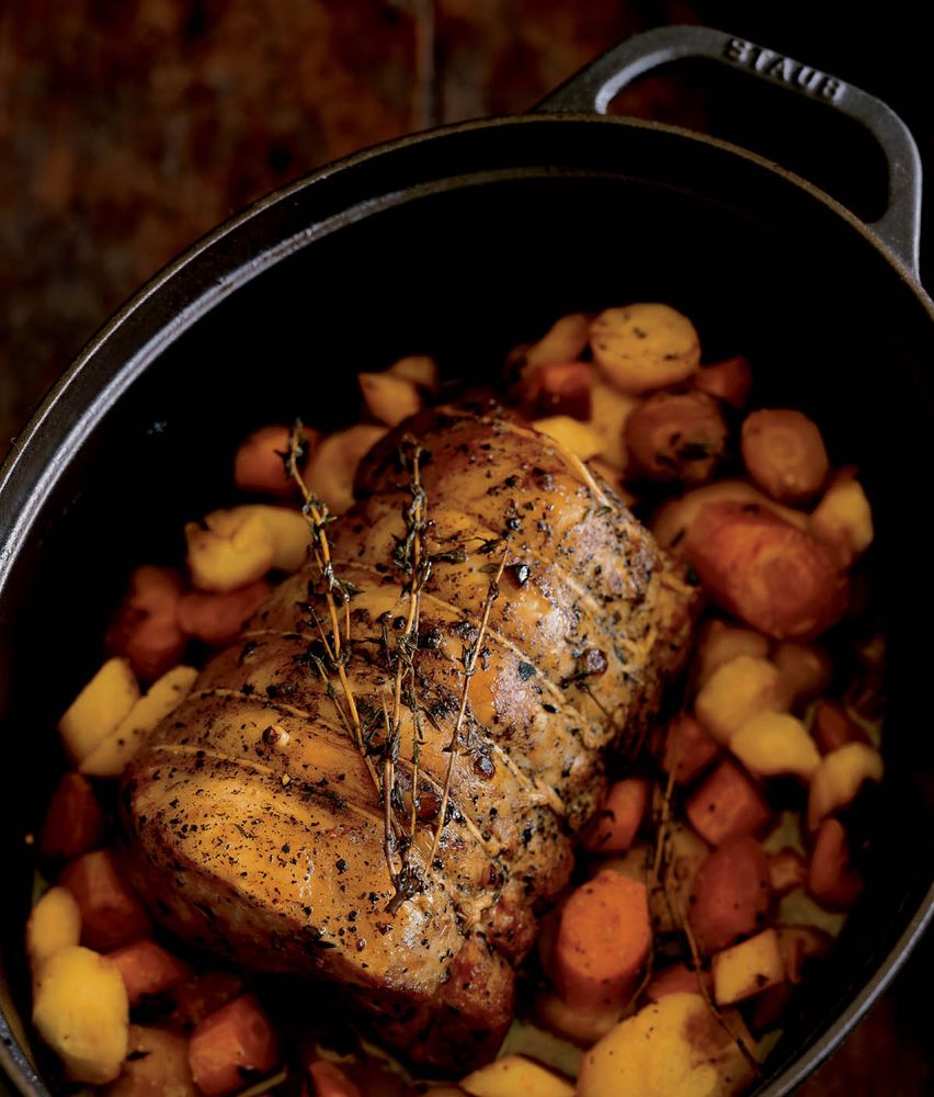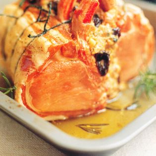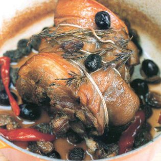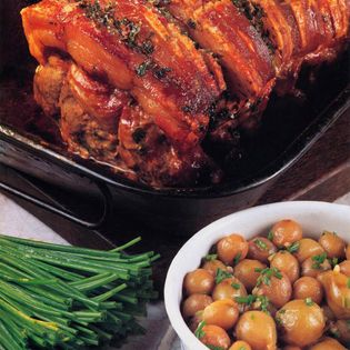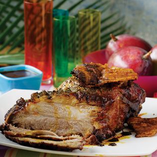 "Joints of pork cooked by roasting or braising are popular as cold dishes in many countries. The stock which accumulates during cooking jellies when cold and is served chopped as a garnish. It is also interesting to note the presence of a small but widespread group of dishes using combinations of pork and seafood, especially clams and shrimp." Alan Davidson in The Oxford Companion to Food