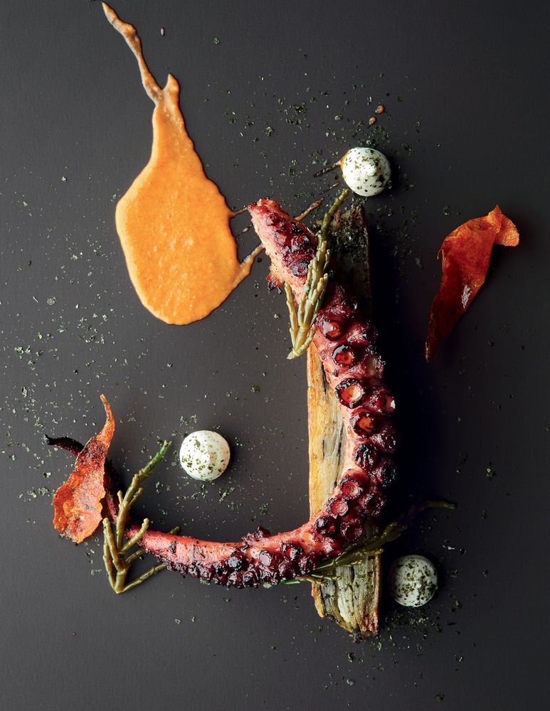Octopus, seaweed Anna potato, smoked tomato sauce, anchovy custard