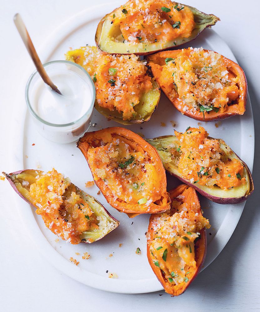 There are few better (and easier) ways to bring warmth and comfort to your dinner plate than cooking up a batch of baked potatoes. This collection includes ordinary spuds and sweet potatoes, served in all sorts of ways, from super simple to fully loaded. Dig right in...