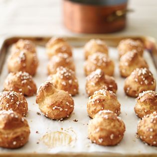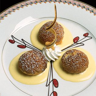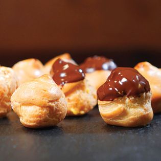 Cookie-Crusted Profiteroles with Nougat Sauce