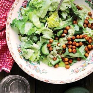Eat Your Greens Salad with Chickpea Croutons and Green Goddess Dressing