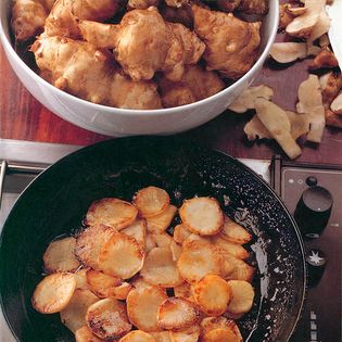 Sunchokes (or Jerusalem artichokes) are one of the few vegetables that reach their peak flavor in the colder months. Seek them out in farmers' markets and greengrocers if you can't find them in supermarkets, and use them in all sorts of wonderful ways. Try them deep-fried with a yoghurt relish, simply sauté them, or whiz them into a smooth and creamy soup.