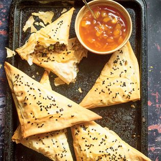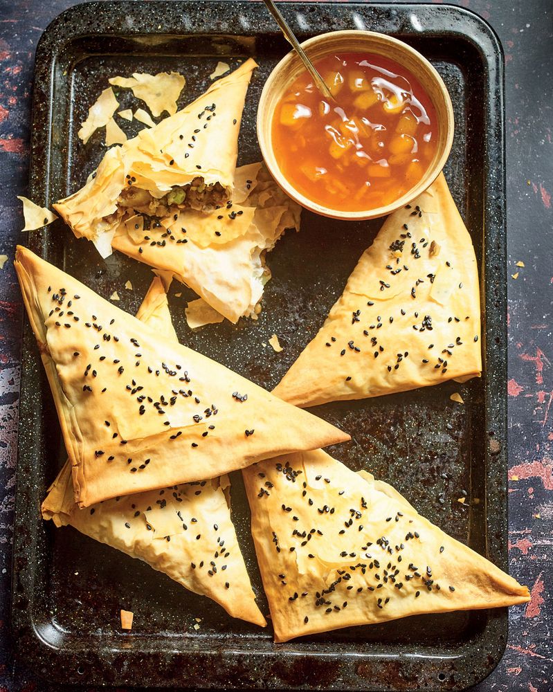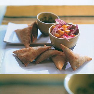 The roots of these crunchy treats can be traced back to India and Central Asia. Nowadays, these flavorful pastry triangles are the ideal party treat. They can be filled with all sorts of spiced ingredients and make a great finger food for parties.