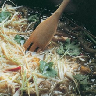 Noodles made from rice flour and water are are popular throughout Asian countries, especially where rice is a staple. They come in a range of widths, from thread-like strands to wide flat noodles, and you can buy them fresh or dried. Use them in salads such as this Crayfish, Pink Grapefruit, and Glass Noodle Salad, experiment with Cambodian Noodle Soup – or try one of the other recipes in this collection.
