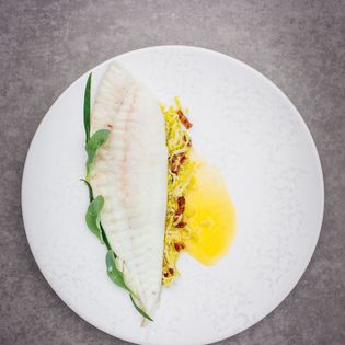 Roast Turbot/Lemon Emulsion with Pancetta & Leeks