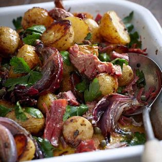 Tender young baby potatoes are one of the many edible joys of spring. Their diminutive size, subtle taste, and pleasing texture are best enhanced with gentle treatment. Herbs such as dill, rosemary, and mint all combine well with this seasonal treat.