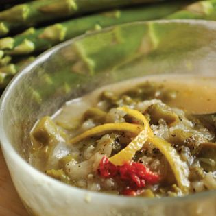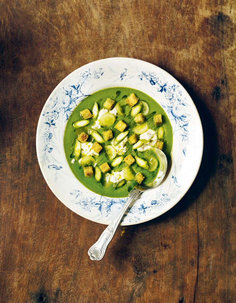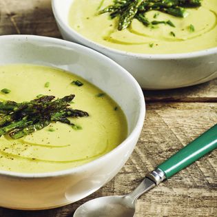 There's much more to asparagus soup than simply blitzing up some spears with cream and stock. Make the most of the vegetable's short season. Ring the changes and try one, two, or a few of these recipes. Enjoy the variety of tastes and textures in this collection, from a simple and impressively elegant White Bean and Asparagus vegan soup, through to a hearty Asparagus Broth with Tortellini.