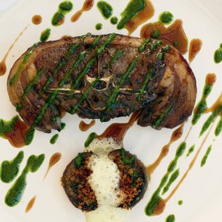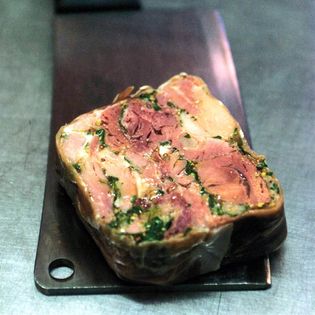 Pressed Terrine of Yorkshire Gammon with Fried Ledstone Quail Egg, Spiced Pineapple Pickle, Mustard Seed Dressing