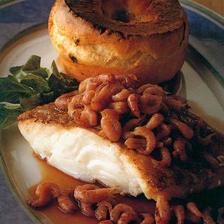 Roast Cod with Horseradish Yorkshire Pudding and Shrimp Gravy