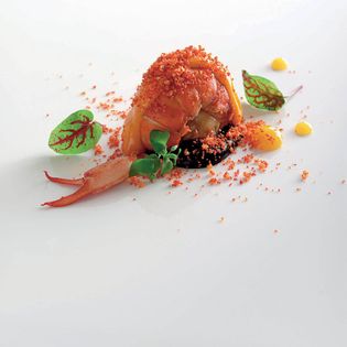Charcoal-Smoked Marron with Nori Purée, Young Ginger, Shellfish and Dai Dai Emulsion