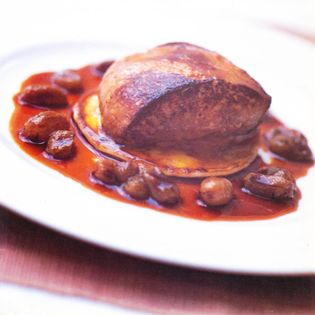 Roast Foie Gras on Potato Pancakes with Macerated Grapes