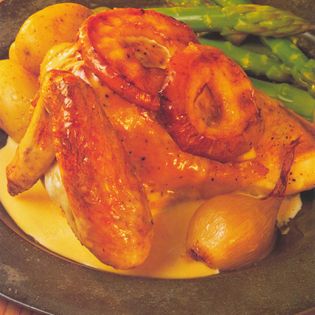 Roasted Shallots with Mint Leaves and Grainy Mustard