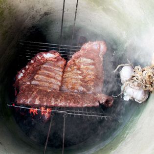 Barbecued Bavette Steak with Anchovies, Red Wine and Garlic